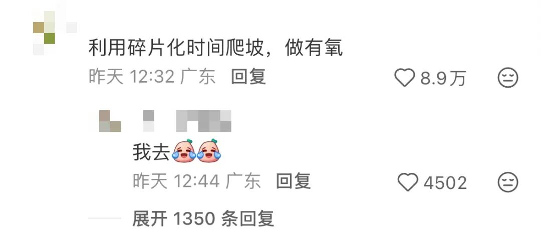 一开始大家还觉得挺好玩的:“利用碎片化时间爬坡,做有氧。”