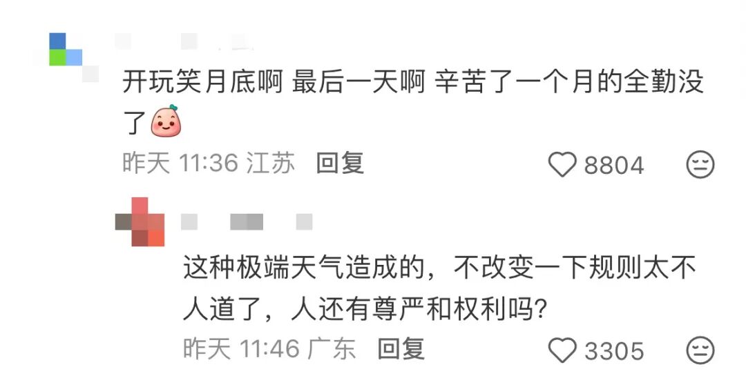 “这种极端天气造成的,不改变一下规则太不人道了,人还有尊严和权利吗?”