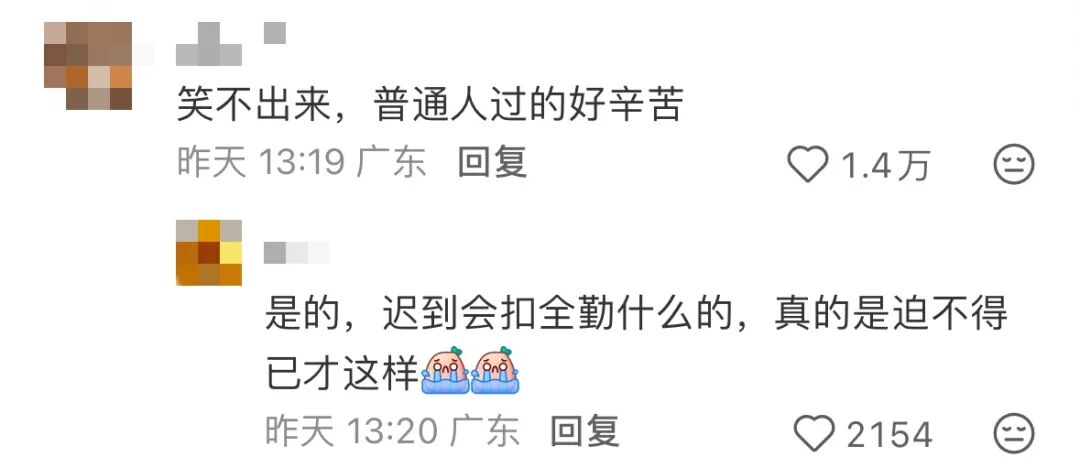 “迟到会扣全勤,真的迫不得已才这样,普通人过得好辛苦。”