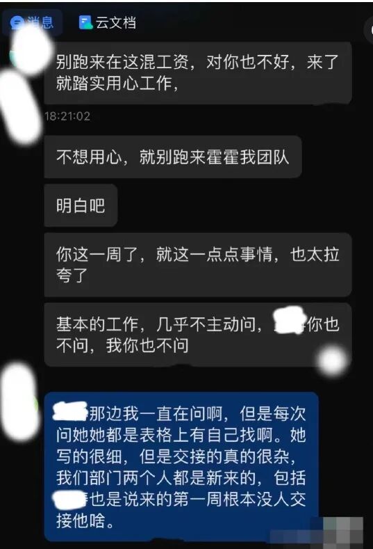 别跑来在这混工资,来就踏实用心工作,不想用心,就别跑来霍霍我团队。”
