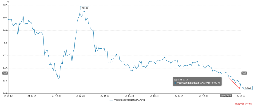 按照传统的理论,国内不会有太多的货币宽松空间,甚至于央行需要收紧货币。然而,事实上的真相是,央行逆势降息了10bp左右。如下图所示,一年存单利率从2月底的1.59%下降至目前的1.48%。那么,央行的底气来自于哪里呢??来自中国制造的全球垄断地位。由于中国制造业份额已经超过了35%,所以,中国的ppi已经变成一个跟油价类似的变量,ppi的走强会推动人民币不断走强。总的来说,当中国制造不具备全球垄断地位时,本国政策利率R是人民币币值的关键支撑,强势美元必然迫使存单利率上行;相反,当中国制造具备全球垄断地位时,ppi才是人民币币值的关键支撑,本国政策利率R完全可以脱离强势美元的制约。根据2025年的中央经济工作会议,引导“物价合理回升”是今年货币政策的重要工作方向。