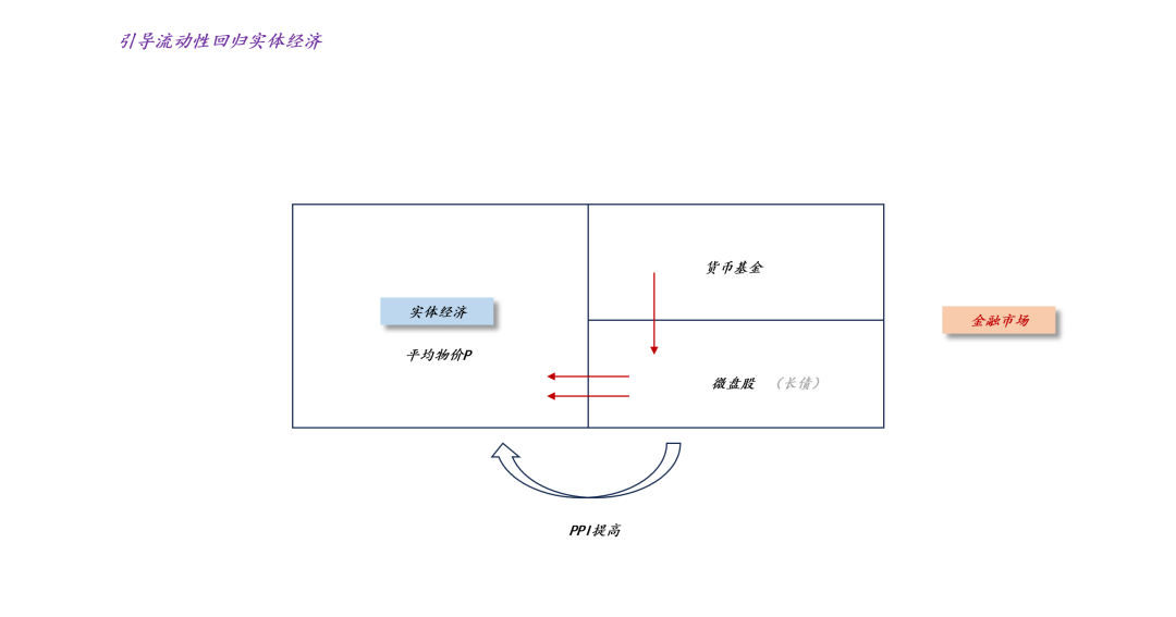 那么,该如何引导“物价合理回升”呢??从最根本的货币银行学原理上来讲,就是要引导流动性从金融系统回归实体经济。