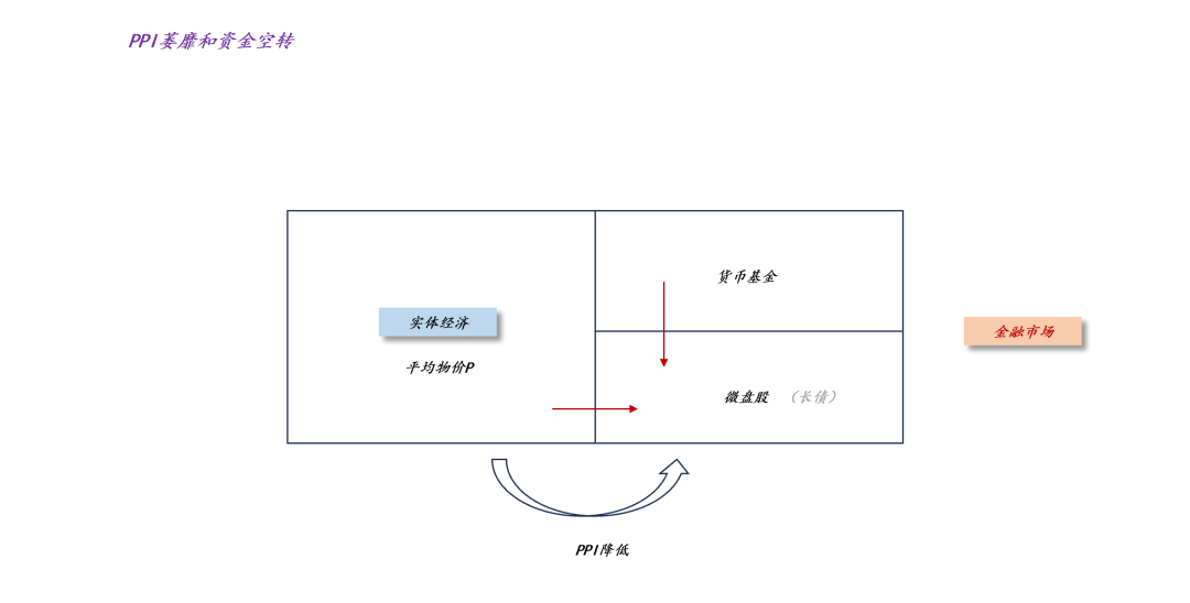 显而易见,后一个方面至关重要。实体经济是吸纳还是释放流动性会显著地影响整个流动性格局。如上图所示,当ppi萎靡时,实体经济会不断地释放剩余流动性,在这种情况下,降低政策利率R只会导致资金空转,具体会体现在微盘股上涨和长期收益率下行。