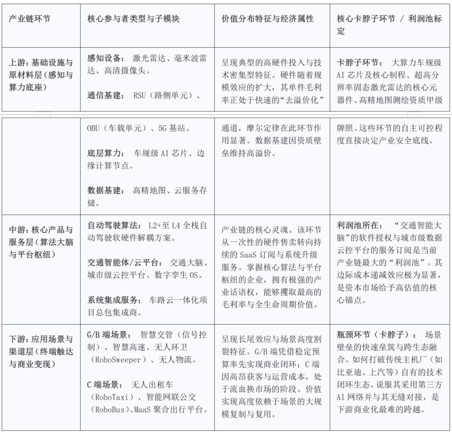 下游应用场景的开拓则是检验商业模式能否跑通的唯一试金石。当前下游面临的最大挑战在于场景的碎片化与运营成本的居高不下。技术深度必须兑现为商业闭环,而这要求企业必须突破资源的瓶颈,让自动驾驶与车路协同技术在超过100个以上的长尾场景(如园区、港口、城市主干道、环卫路线等)里扎根,建立起坚不可摧的“场景堡垒”。只有场景足够丰富,才能源源不断地为中游的大模型提供数据“营养池”,从而形成数据与商业的良性飞轮。