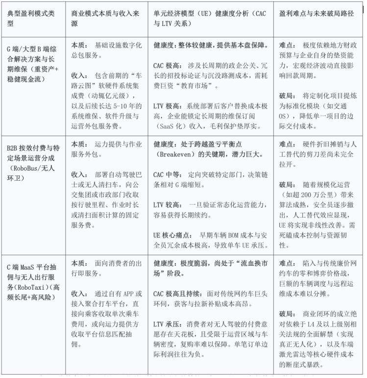 尽管理论愿景宏大,但智慧交通的商业化落地绝非坦途。技术研发的深水区、硬件制造成本的高企以及早期市场拓展的艰难,使得众多企业陷入了商业模式可持续性存疑与盈利极度困难的泥潭。基于底层商业逻辑,以下深度拆解赛道内目前跑通的三种主流商业模式,并运用单元经济模型(Unit Economics)对各项模式的健康度(特别是CAC与LTV的动态关系)进行诊断。