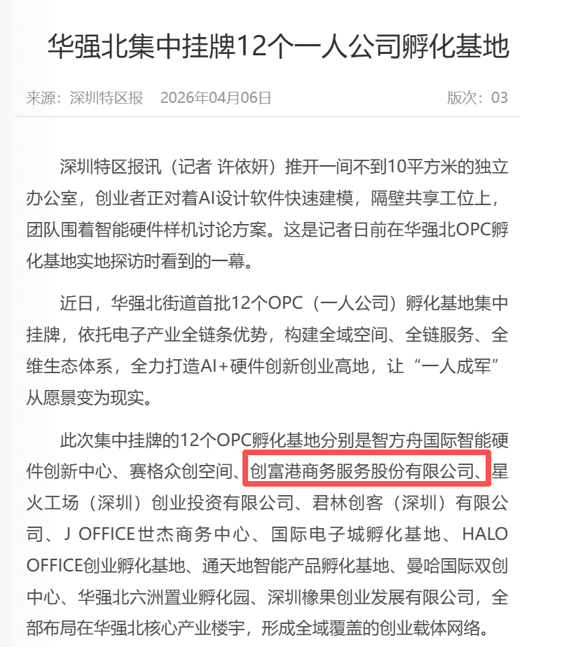 这一系列福利,是创富港响应政策、助力创业者的实际行动,让深圳一人公司既能享受低成本办公,又能获得技术、资源、资金的全方位支持,轻松抓住AI创业风口。