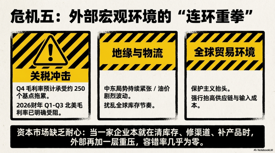 耐克的问题当然不是关税造成的,但当一家企业本来就在清库存、修渠道、补产品,外部再加一层成本压力,资本市场通常不会给它太多耐心。