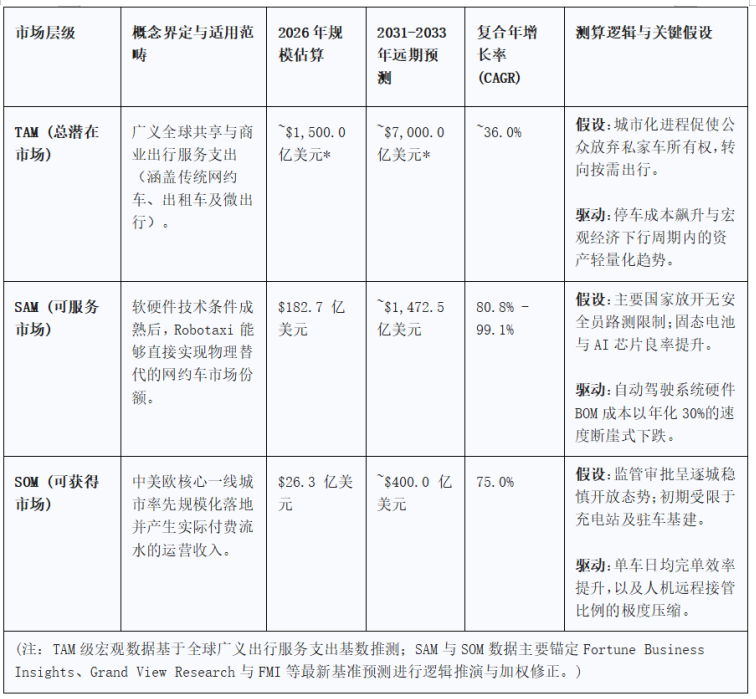 基于当前最新可获取的多维市场数据与交叉验证模型,本报告对2026-2031年Robotaxi市场的全生命周期空间进行了深度逻辑推演。