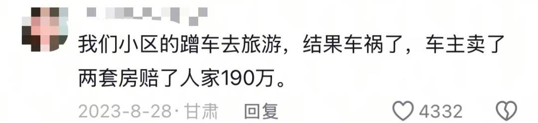 “我们小区的蹭车去旅游,车主卖了两套房,赔了190万”