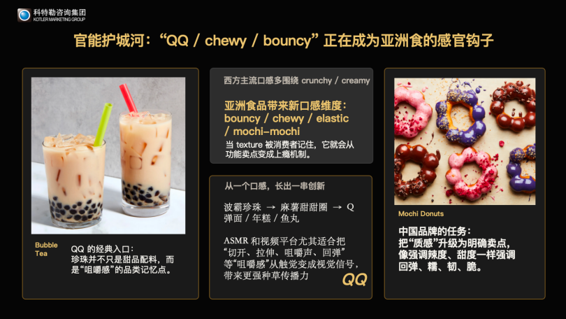 感官钩子革命:将中国食品独特的“官能性”(如Q弹、耐嚼、糯而不粘)作为核心卖点,升级美国人对口感的认知(从传统的脆、奶油感到多元的感官维度)。这是构建产品高触感识别度的最大机会。