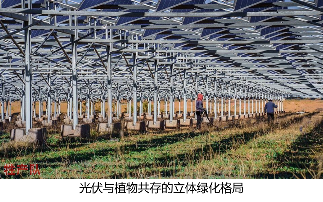 这时候,咱们的玩法也升级了。不再是单纯的板上发电,而是板下修复生态。于是,一种叫“板上发电、板下种植、板间养殖”的模式诞生了,在光伏板的庇护下,草长出来了,羊跑进来了,“光伏羊”成了网红。