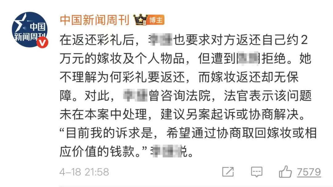区区彩礼才几万块钱,而她的嫁妆要不回来,还要每个月承担孩子的抚养费,相当于这一切都给别人做了嫁衣。