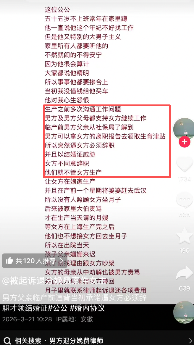 不辞职就不领证,男方就是吃准了孩子都有了,小李不得不为了家庭妥协。