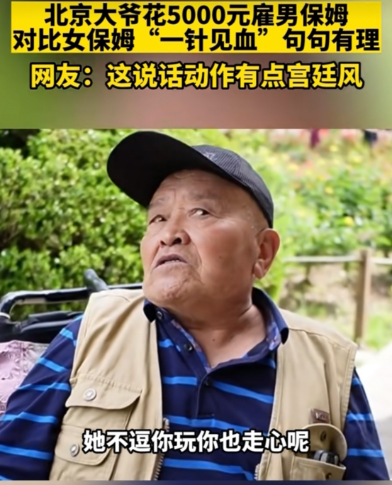 但当被问到男保姆与女保姆之间的区别时,大爷的回答堪称一针见血: