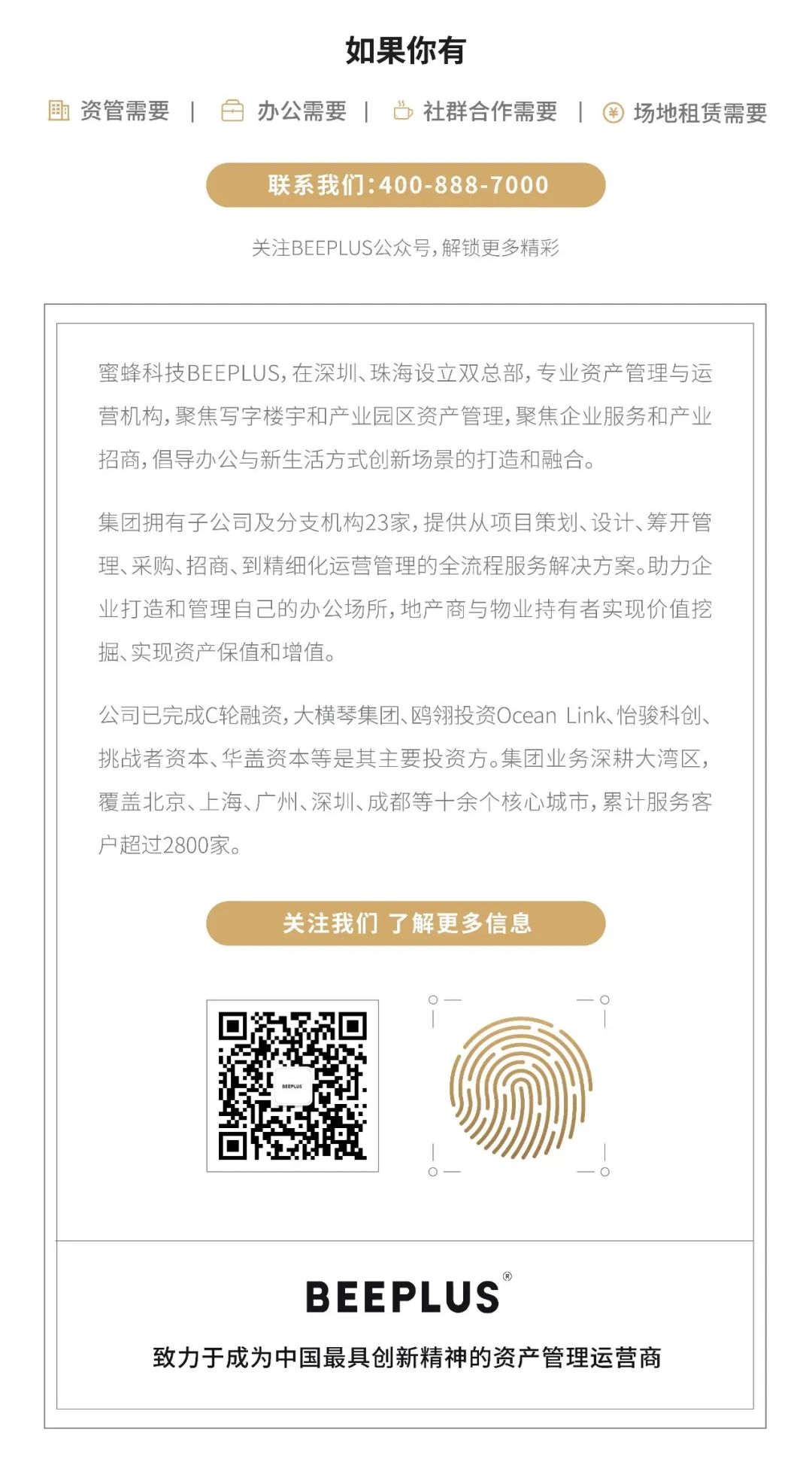 大横琴&BEEPLUS中心是蜜蜂科技BEEPLUS与大横琴集团携手打造的产业载体,立足于横琴粤澳深度合作区,聚焦横琴产业集聚、人才集聚、企业成长、区域合作和本地区高质量发展。蜜蜂科技BEEPLUS从设计与运营规划就围绕企业需求展开,不仅提供专业办公环境与设备,让企业能享受国际化商务环境,助力企业提升软实力,提升雇主品牌形象。同时,在运营中提供拎包入驻管家式服务,持续吸引企业落子横琴。