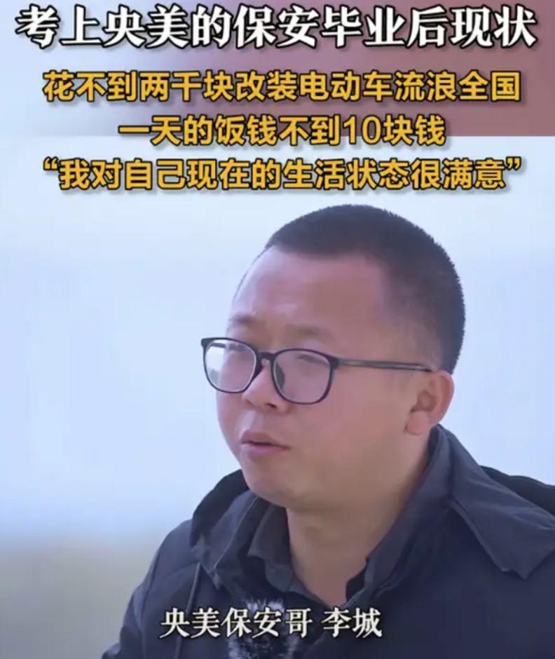 从08年考中央美院折戟开始,出身湖南山村的他,半工半读。因为体力的压榨,在城市的漂泊生活里,他差点就要把“考央美的梦忘了”。也就是在这个节骨眼上,李城经历了一场和甘相伟相似的旅行。没承想,门卫看他风尘仆仆的模样,突然来了句:来找工作?要不要来央美当保安?李城一愣神,立马应下,这对李城而言,是意外之喜:反正在哪儿都是干活,不如离梦想更近一点。于是,之后的两年,央美门口,你总能看到一个个头不高,但是精神头十足的保安小哥,一有空闲就从口袋里掏出一个小本本,在值班室里疯狂地练习绘画。最后他不得不殊死一搏,辞去工作,回到高中复读,这才在2016年考取央美的中国画专业。不过无论李城之前有多么狼狈,在踏入央美大门的那一刻,他光芒万丈。这个央美小保安,自带光环,未来或许还有各大美术机构提供高薪厚职,似乎他和“成功人士”已经画上了等号。入学考试专业第八,速写92分,被院长夸赞的,真的是自己吗?“我曾经也努力练习,但是始终还是差一点,我认清了自己。”不过比起学业的磕磕绊绊,毕业后李城在职场更是撞得鼻青脸肿。和朋友合伙开了家美术培训机构,还没什么起色,就遇上了疫情,一年后黄了,收入变成了负数;后来去私立美术学校当老师,因为和学校来的新校长“教学理念”不合,被辞退。最后他干脆开着一辆破旧的改装电动车,做起了旅行博主,浪迹天涯。曾经李城是很多人的励志榜样,现在有人又笑他是“逆天改命”失败的模板。可说真的,什么励志,什么逆天改命,都是别人强加给他的。做旅行博主半年多来,李城每月只有1000多元的收入。也许这和最初的期许,出入太大,但就像李城自己说的那样:这样的收入对他来说完全够用,绘画他会一直坚持下去。那时甘相伟的《站着上北大》已经风靡全国,李城还在保安亭对着央美的校园望眼欲穿。电子科技大学一位40岁保安大叔的家中,发生了一次不大不小的争吵。“现在的社会都讲关系,学历也没那么大用处,又不会涨工资……”听着妻子苦口婆心的絮絮叨叨,在电子科技大学工作了14年的张永辉沉默了。5年前他边工边读,从电子科技大学的继续教育学院顺利拿到成人本科的文凭。毕竟考研时间和金钱一样不能少,家里买房,还欠着外债,上有老下有小也不能全压在妻子一个人身上不是吗?可是妻子刀子嘴豆腐心,看着丈夫眸光里的憧憬,最后还是咬牙同意了老张继续求学的打算。《中国新闻周刊》当年的那篇采访里,提到过两个细节。“在985高校的服务岗位工作,大部分人会有种潜在的自卑感。张永辉不一样,他做得很好,他内心是尊重老师的,觉得老师有魅力,希望向他们靠近。”有人说张永辉假兮兮的,“农村来的,就是个保安,保安就是看门狗。”2016年6月,43岁的张永辉拿到电子科技大学政治与公共管理学院公共管理专业的硕士学位。毕业典礼结束后,他脱下藏青色的学位袍,穿过大半个校园,走进电子科技大学的门卫室,将保安的大盖帽扣到了头上。看到这里有人要问,怎么还在当保安?一个保安读那么多书有什么用?老张的回答很诚恳:不是说读了书就一定能逆天改命,是有知识才可能改变命运。2019年央视纪录片《教育强国》里,老张有一段1分多钟的单独镜头,那时他已经走上管理岗,成为电子科技大学的保安队长助理。《新周刊》曾经发布过一篇文章:《北大保安:逆袭的蚁群》。“绝大部分求学的北大保安有着如出一辙的‘前传’,他们主要来自全国各地农村,多是初中学历,是‘因为贫穷没有圆大学梦的人’。”“现在北大的保安人数常年维持在500人左右,来来往往,真正实现身份转变‘逆袭’的只是少数。”也就是说,以保安的身份,鱼跃龙门,本来就是小概率事件。他们努力过,绽放过,当励志退潮,摘掉滤镜去看,他们或销声匿迹,或归于平淡,但并非就是失败。所谓不负此生,无非就是在自己的时区里,按照自己的节奏,走完这一生。文中观点仅为作者观点,不代表本平台立场