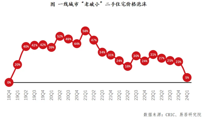 我想说,这些全都是包装后的漂亮话,翻译成大白话就是——在北京,相较于普通房子10%左右的价格回调,老破小一跌就是二三成。如西城天宁寺东里上个月成交了一套两居室,总价345万,大半年前同样的两居室成交价在500多万;北四环的一居室今年3月份成交价285万,单价约6万/㎡,同户型一年前的成交价是450万,单价接近10万/㎡。这样的数据不止是在北京一抓一大把,上海也是如此境遇。比如带二师附小和铁岭中学学区的密云小区,单价曾经高过14万/㎡,现在繁华落幕后,单价直接腰斩,一居室成交价在200多万;此外,还有邮电二村这类的老塔楼小户型,跌幅接近45%,21年一套53㎡一居室卖500万,现在成交不到300万;位于普陀的甘泉一村老破小不到150万即可入手,单价降了2万/㎡,绝对是年轻人友好型。从18年,老破小的价格一路横冲直撞,直至21年达到巅峰后,总算开始回调。今年,一线城市老破小的泡沫已经挤光了,价格基本接近18年的水平。 什么年轻人拯救老破小,新一代买房观念在变化,全是在扯淡。年轻人们难道不知道改善大户型的阔绰尺度能让生活更美好?不知道极尽奢华的江景豪宅才能把城市的灯火辉煌收藏在一窗之内?正如保时捷永远也不会懂,买不起保时捷的人们缺的绝对不是一张5万块钱购车优惠券。更遗憾的是,房地产也没有雷总这般人物,能够打造出小米SU7,让年轻人拥有跑车平替。在这一轮周期中,老破小降得足够凶,大几百万真金白银地降价,让年轻人终于有了接盘的能力。更关键的点是,年轻人不仅有了支付首付的能力,月供压力也更小了。在一线城市,当动辄五六千的房租完全可以覆盖老破小的月供时,质的改变发生了——因为老破小降得足够便宜,首付比例降低,月供平替房租,年轻人有机会在城里安身立命,为积攒下自己的家业奋斗。虽然年轻人们足够给力,老破小成交表现得非常好,但老破小依旧是天量供应。截止23年底,上海各区的老破小占比依旧很高,如杨浦、长宁的老破小占比均在30%以上。尤其是23年9月份认房不认贷新政后,老破小挂牌量也激增了万余套。挂牌量超17万套的背后,就有老破小的卓越贡献。如东城和西城核心区超20年房龄的就有近6000套;朝阳更是有1.3万套的老破小……现在的情况往往是这边刚一套卖掉,那边又来一套新上架的老破小。老破小疯狂成交的同时,还在疯狂上架。老破小终究还是被自己打败了。一季度的上海老破小成交势头正猛,但4月份上海的二手房成交量却环比降了近2000套;今年来,成都二手房成交套均面积持续降低,1月约95㎡,而3月仅有约92.5㎡,套均总价降至134万。今年2月,总价100万以内的房源成交占比为近三年最高。然而,成都150万及以上的房源在2、3月份的成交占比都创了历史新低;广州在4月成交的二手房中,60-90㎡小户型占34.67%,环比增长1.69个点,同时120㎡较大户型成交占比下降了约0.4个点,总体的二手房成交也环比下降2.61%。以上几个城市都在证明,卖出老破小并进行向上置换的房东比例极低。市场好的时候,房东通过向上置获取跑得更快的标的。反之,则抛售老破小来获取现金流。况且现在老破小跌得这么厉害,即便卖了向上置换仍需要加截杠杆,现在大家都在努力去杠杆,能这样做的勇士比能保值的老破小还稀缺。正如过去的几轮行情中,往往是一线城市领涨,二线再跟上;再具体到板块上,则是核心板块优质房产先涨,之后才能轮动到下级板块。如果你去翻一翻往年的成交数据,老破小从来都是成交主力,铁刚需从来都是市场的主要购买力。直接原因大降价的老破小成交确实更好了,其次则是市场下行,时不时地把老破小成交数据拉出来遛遛已经成了一种习惯。而到了市场上行时期,大家都在关注更能涨的房子,或者是带有学区属性,单价逆天的老破小,普通老破小就鲜少有人问津了。最后,我想说的是老破小的存在意义就是因为房子的总价够低,能让普通人们有套自己房子,有个家。其实啊,买老破小的大多数人更关心的是今天的菜价涨了没、深夜的电影有没有特惠场……咱就别老是拿老破小和市场回暖说事了。文中观点仅为作者观点,不代表本平台立场