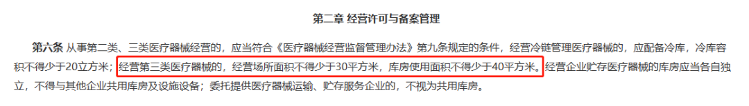 近日,北京市药品监督管理局发布了新修订的《北京市医疗器械经营监督管理办法实施细则》(以下简称“细则”),【细则]第二章第六条表示,"经营第三类医疗器械的,经营场所面积不得少于30平方米,库房使用面积不得少于40平方米".相较于之前规定的第三类医疗器械经营场所使用面积大大降低了相关限制。