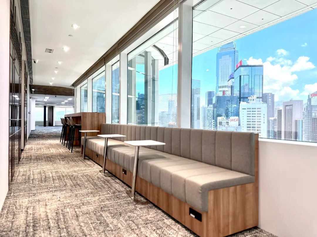 服务式办公室采用全通透的玻璃幕墙设计,最大程度引入维多利亚港的碧海蓝天辽阔美景,使客户尽享自然舒适的办公体验,有效舒缓因紧张的工作节奏而产生的负面情绪,保持工作冲劲。
