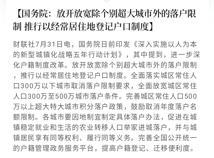 这意味着,人随产业走、人往高处走,再无障碍。人口向大城市集聚的趋势,将会持续加速。