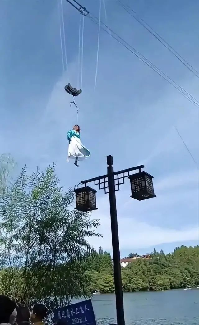 飞天威亚突发意外,一游客被悬挂空中!当地回应→