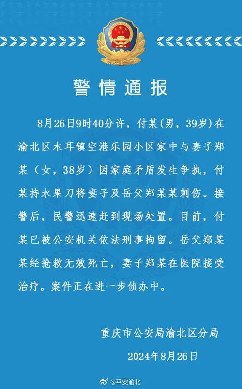 男子持刀刺伤妻子刺死岳父!已被刑拘