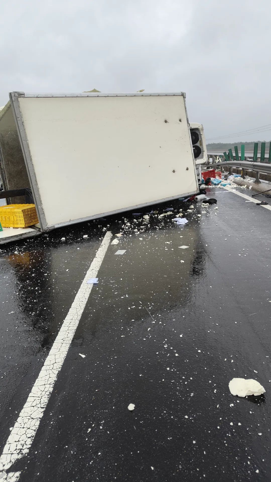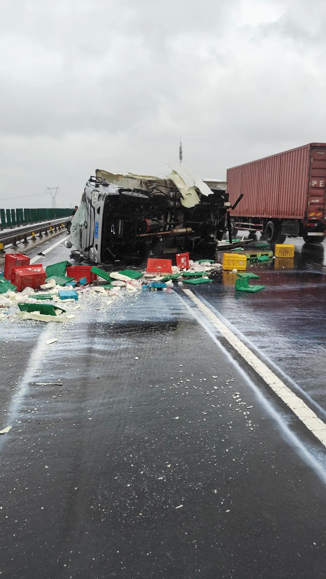 随后王洪山与妻子立即赶到了侧翻的货车旁边,司机正在车里用脚使劲踹着前挡风玻璃。此时,有四五名过路车辆的司机也纷纷赶来救援,并带来了铁棍和斧子等工具。有经验的司机还将货车内洒落出来的几箱豆腐堆放在货车前,起到警示牌的作用。