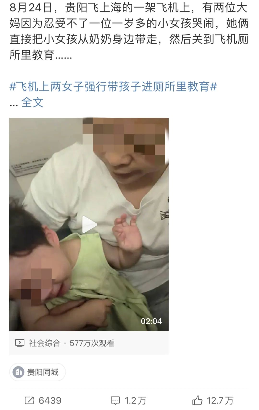 她们竟直接把小女孩从奶奶身边带走,然后关到飞机的厕所里教育。