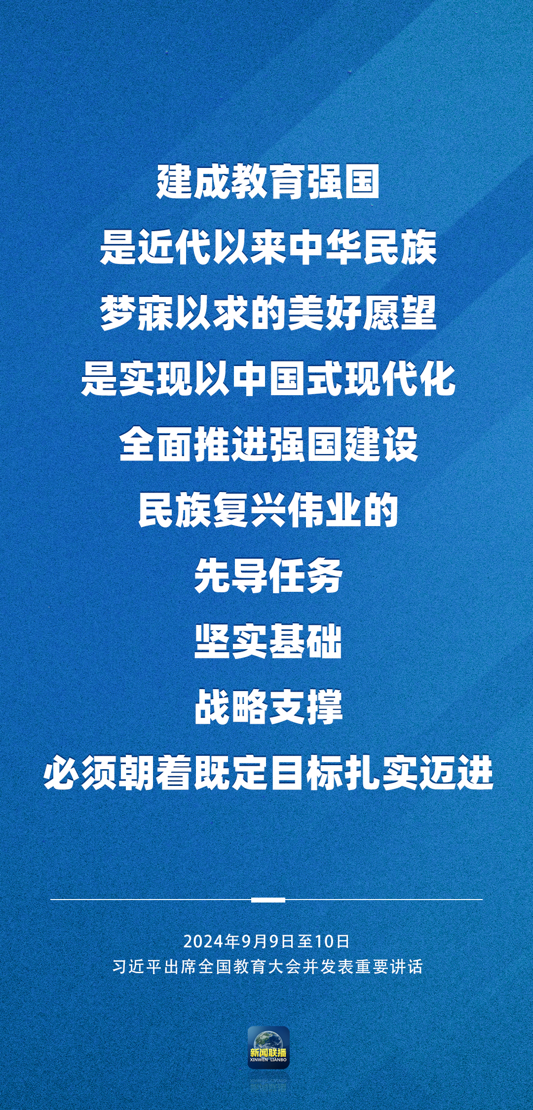 全国教育大会9日至10日在北京召开。中共中央总书记、国家主席、中央军委主席习近平出席大会并发表重要讲话。他强调,建成教育强国是近代以来中华民族梦寐以求的美好愿望,是实现以中国式现代化全面推进强国建设、民族复兴伟业的先导任务、坚实基础、战略支撑,必须朝着既定目标扎实迈进。