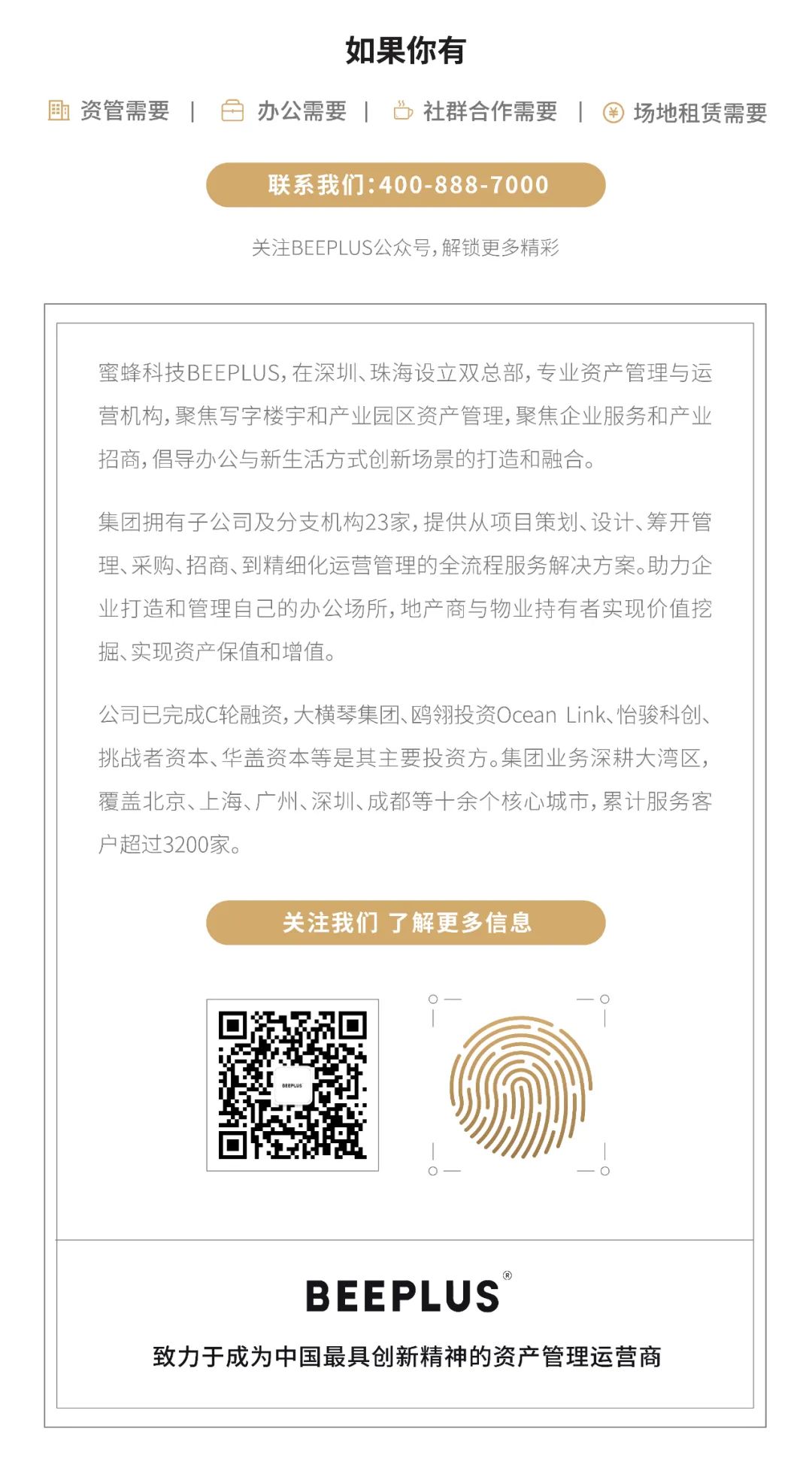 在客户服务上,蜜蜂科技BEEPLUS的运营团队通过深入理解客户需求,提供全程陪伴式管家服务。从客户入驻前的周到考虑,到入驻后针对不同产业方向和企业圈层的定制化活动,蜜蜂科技BEEPLUS致力于打造一个充满活力的产业生态圈。