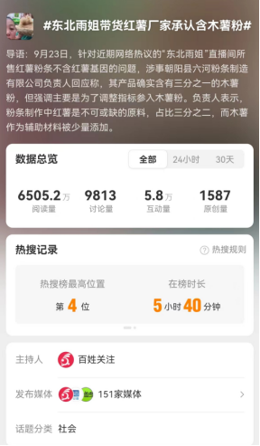 于是在9月26日,“东北雨姐”直接坐不住,发视频回应“殴打打假博主”及“红薯粉条”等事件,并开启直播讲述事情经过。