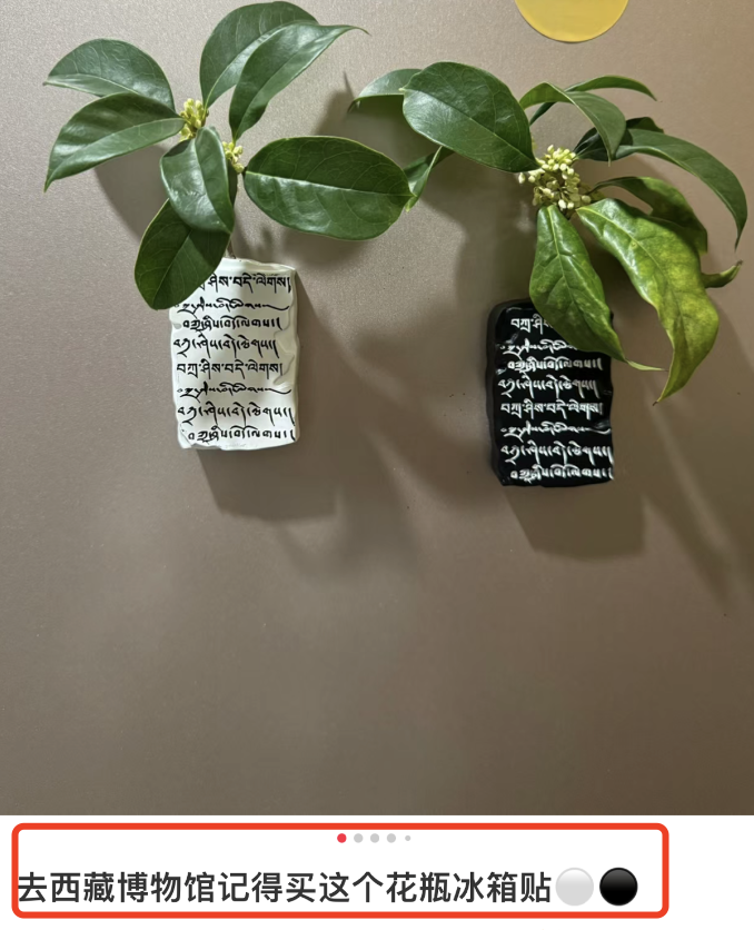 在小红书搜索关键词“文创冰箱贴”,仿佛打开了新世界。线上销售的冰箱贴材质各异:有陶瓷、木质、玻璃,甚至塑料乐高方块。一位文创定制厂商向我们介绍:“现在景区热度上涨,文创冰箱贴订单显著增多,设计开始趋向带有功能、趣味的定制。”只有你想不到没有做不出,可转动的、自带流体的应有尽有。除了好看,文创冰箱贴的功能性也非常丰富:有的可以充当开瓶器,有的甚至可以充电照明。另一面,冰箱贴主题包罗万象,随着博物馆旅行热,各种文物冰箱贴爆款出圈。不仅局限于出土文物,已经发展到覆盖古建筑、壁画、雕像等众多方向。网上把国博凤冠冰箱贴和先农坛星空藻井冰箱贴并称为北京两大最难买的两款。一些冰箱贴融入地域特色。设计融入了当地的文化元素和标志性建筑,代表了特定的地理位置和文化背景。西藏博物馆的花瓶款、新疆博物馆的馕型冰箱贴都是热门。大家爱上冰箱贴的另一个原因在于消费者开始看重性价比。“一份礼物可以满足多重期待,更重要的是价格真的不贵,避免了花钱踩雷。”“买零食好分享但是担心有人不喜欢,冰箱贴是一种价格适中,容错率高的伴手礼。”此外,这股冰箱贴热潮还带起了动手能力强的朋友开始研究自制。冰箱贴门槛不高,材料本身包容性和自由度极其丰富,使得很多人自己手工制作。其中,用亚克力和彩色打印照片结合是相对常规的自制方式。而另一些人则去大自然中捡天然材料,有网友自己切割火山石制作,也有人因地制宜,在大理旅行中捡蘑菇自制特色冰箱贴。我们统计了目前电商平台比较火的几款冰箱贴,销售额前十款的冰箱贴中,价格集中在10元-79元不等。由于小巧轻便,不会增加行李负担,非常适合旅行回城购买做礼物,另外冰箱贴的价格相对亲民,基本符合大多数消费者的伴手礼预算。多功能性使得冰箱贴在日常生活中也能发挥重要作用,增加吸引力。以前大家习惯交换地方特产或特色小吃,如今更有人开始互相交换冰箱贴。好看、便宜又能满足情绪价值,使冰箱贴成为办公室里人情往来的新型“社交货币”。文创冰箱贴的进化背后可以窥见景区文创产品多元化变化。反观前几年的景区文创,文创雪糕,受季节限制,吃几口就没。去景区打卡不仅需要糖葫芦、烤玉米,更需要留下独一无二的情感链接。就这样,具有文化性和故事性的文创冰箱贴逐渐成为一种新的文化符号和流行商品。纪念品不仅记录了旅行的瞬间,还记录着当时的经历和心境。你可以通过冰箱贴随时回忆起自己在不同地方的旅行经历和所见所闻。前阵子,网上有一个热门话题:“越来越多的新冰箱已经吸不住冰箱贴了。”为了更耐磨和美观,冰箱的材质正在被改变,很多新款冰箱改用钢化玻璃面板,光滑的镜面带来了更现代的外观,但却已经无法吸附冰箱贴。手机里的旧照片会随着换新手机被遗忘,发在朋友圈里的旅行照片会被时间覆盖。