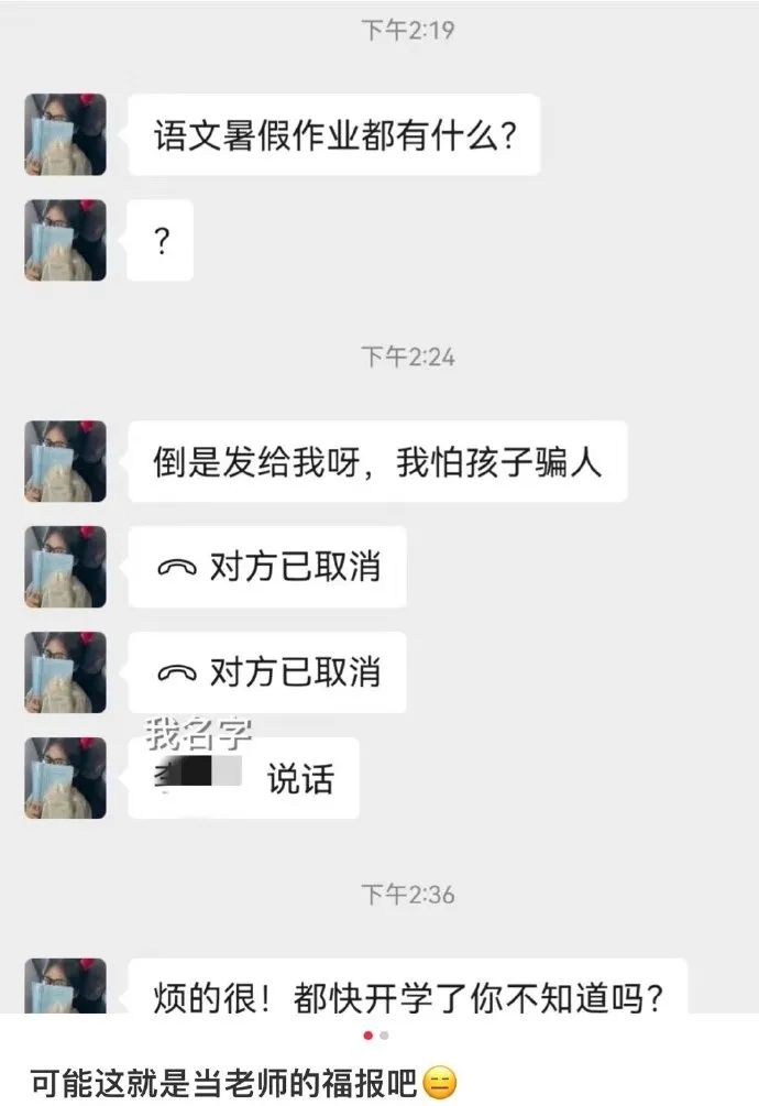 有家长问老师语文暑假作业都有什么,怕自家孩子骗人,老师没马上回复,家长就抱怨连天: