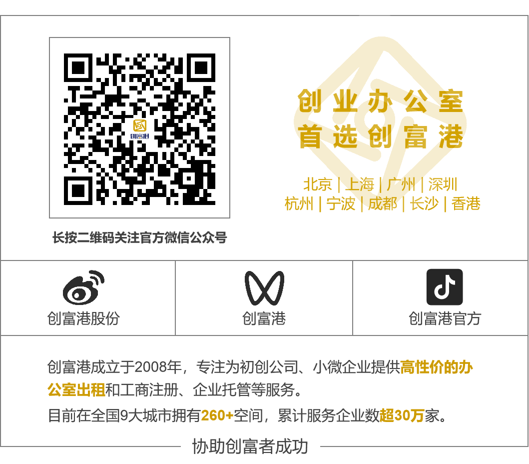 创富港成立于2008年,专注为初创公司、小微企业提供高性价的办公室出租和工商注册、企业托管等专业服务。