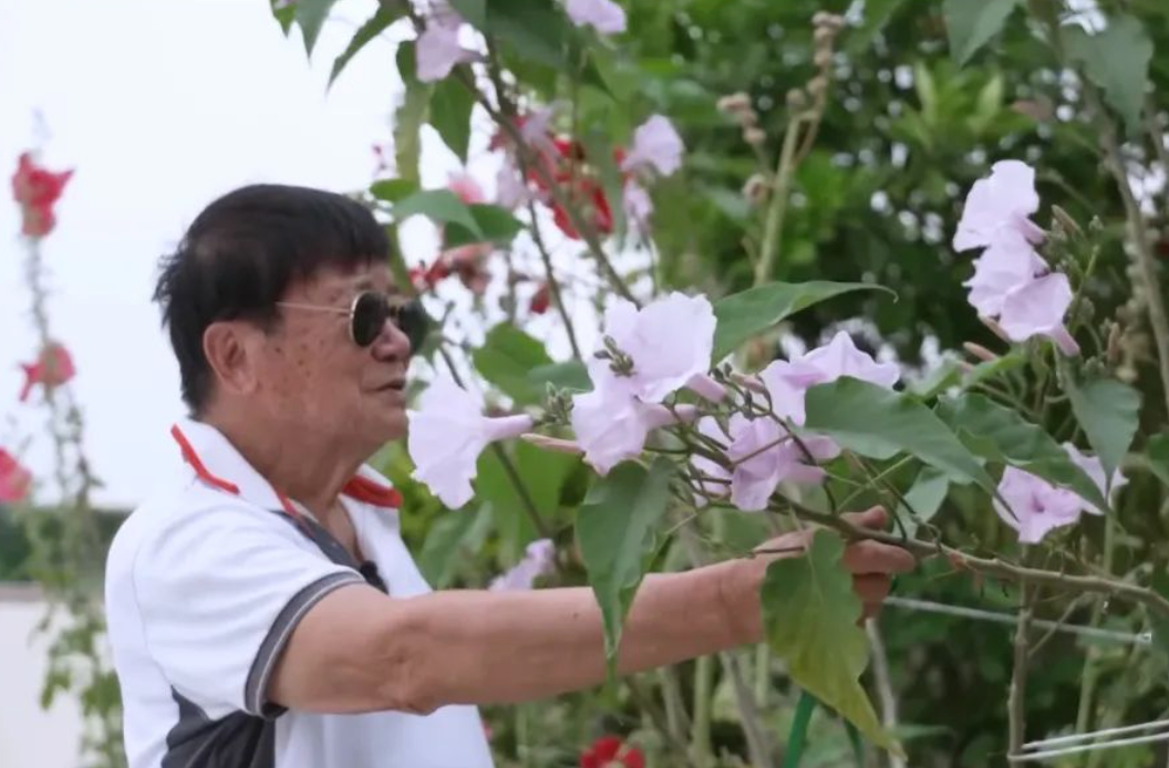 打理的花花草草,每天拍下照片,做成美图,发给老同学老朋友。一来问好,二来也是报平安,这是老人互相关照的方式。