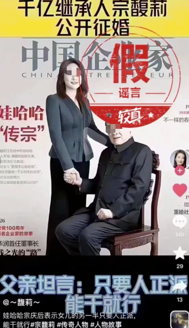 于是网上不知怎么就流传起“千亿继承人公开征婚”的消息。