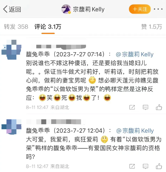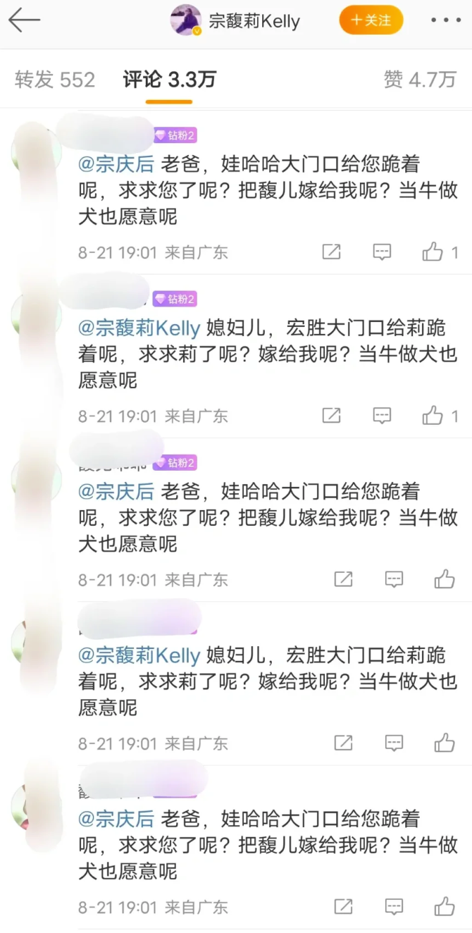 万万没想到,上网冲个浪,差点吓晕在宗馥莉的微博评论区。
