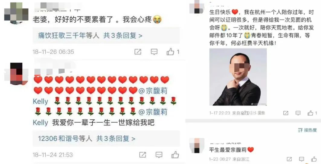 这几位都只是一小部分,在宗馥莉最新一条系统自动发送的生日微博下,3万多人举着爱的号码牌在评论区排队。