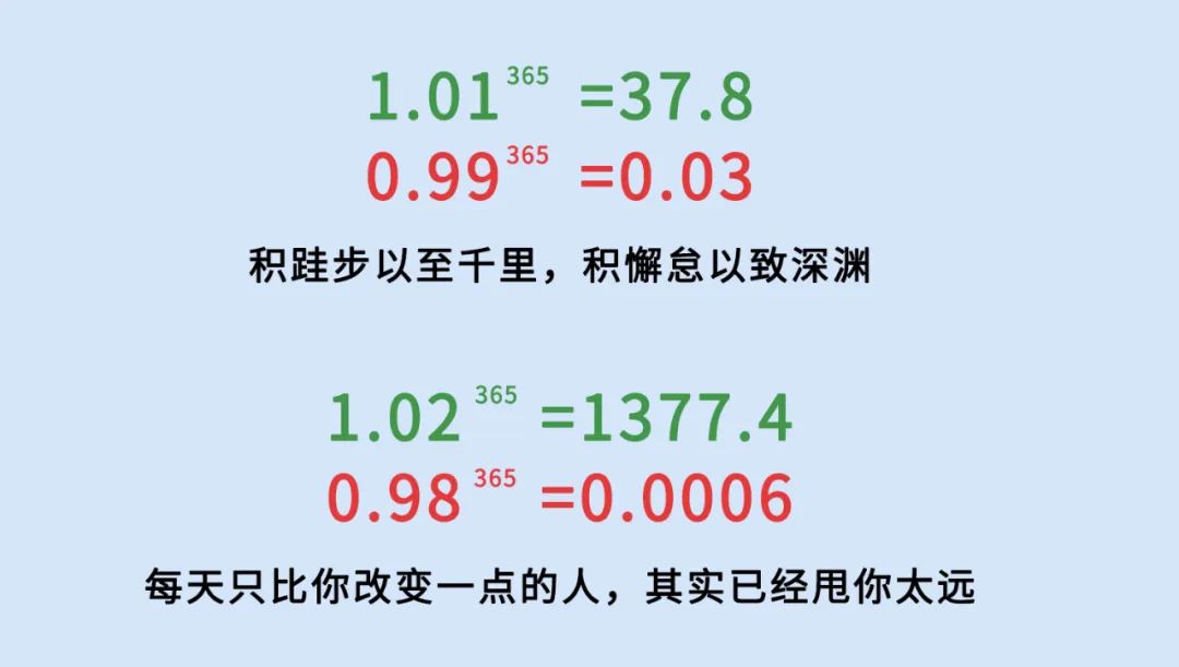 每天只需0.01的成长,365天之后,就是38倍的巨变。