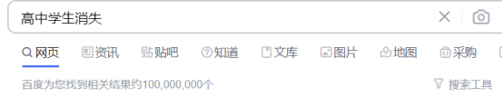 在百度上搜索“高中学生消失”相关词条,相关的结果多到上亿。