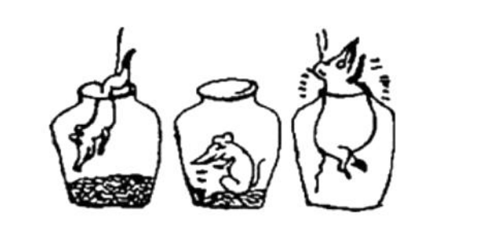 有一天米缸见底,小老鼠才发现因身体肥胖,脑袋被卡在瓶口,想跳出去已无能为力。