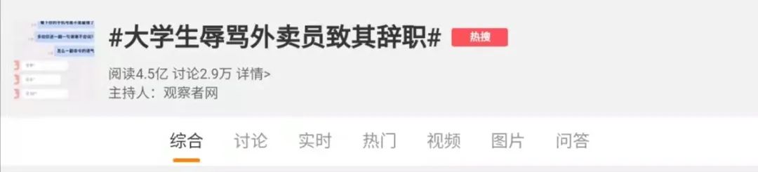 曾经看到过一个新闻:大学生辱骂外卖员致其辞职。