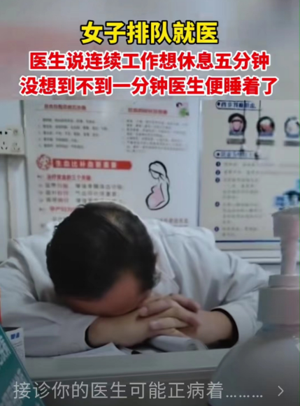 还有一位医生因为连续工作,向病人请求休息五分钟。