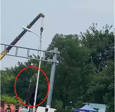在林先生的指挥下,叉车司机将货叉伸到桥面外,直接将车辆扔到了河里。