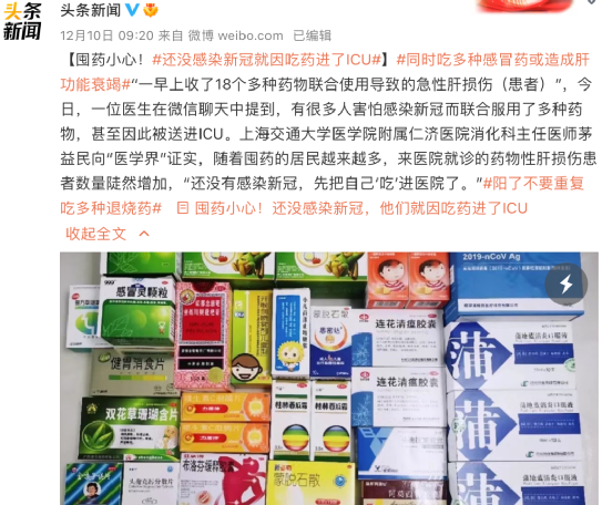 有人在家里囤了一桌子的药。还没感染新冠,就拼命吃药预防,结果把自己吃进了ICU。