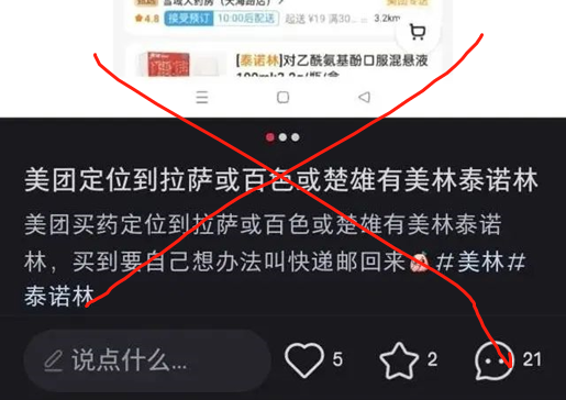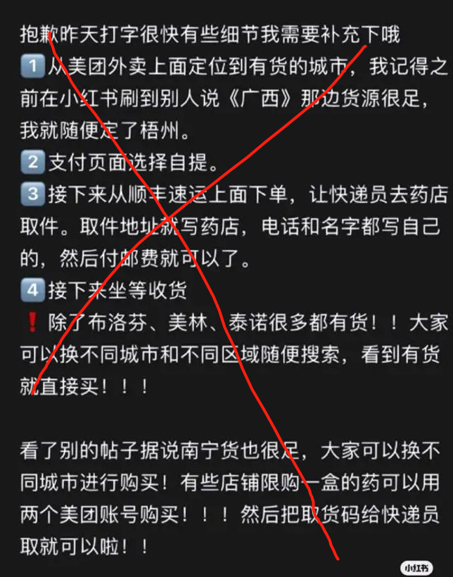 这两天,有博主做攻略指导大家,将美团等软件定位改到广西、新疆、西藏等偏远地区的县城乡镇里去抢药,下单让骑手去药店取货,然后通过快递运输到自己手里。