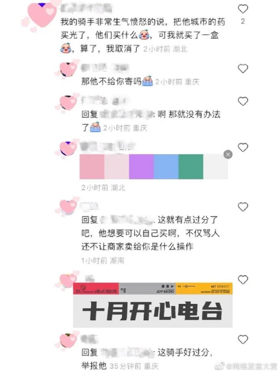 有骑手怒斥她们:你把别人城市的药买光了,让当地人怎么办?