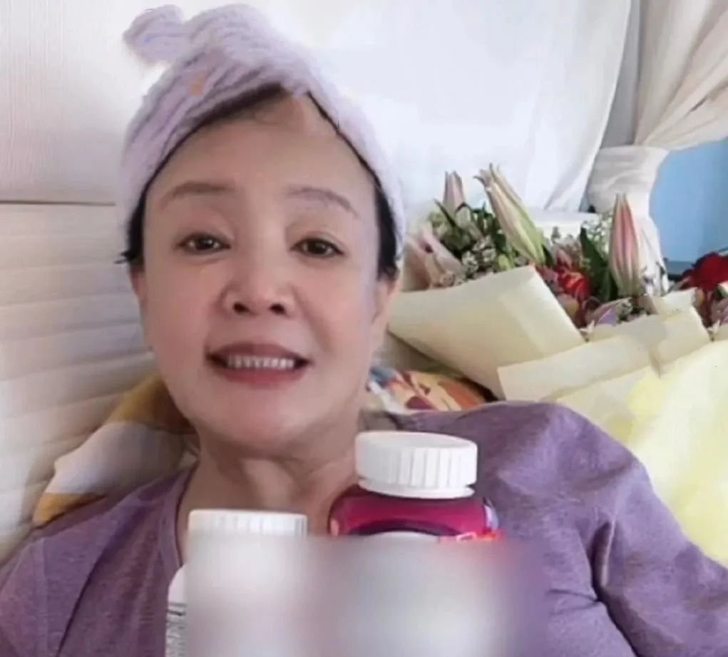 张兰一改往日“精致妆容+全身奢侈品”的打扮,穿着保暖衣,面容憔悴地半躺在床上。