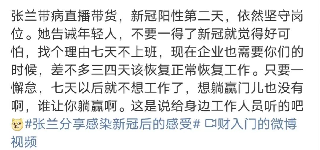 但人家战兰感染上百年一遇的新冠肺炎后,第一天生龙活虎,第二天床上直播,第三天就开始教导年轻人: