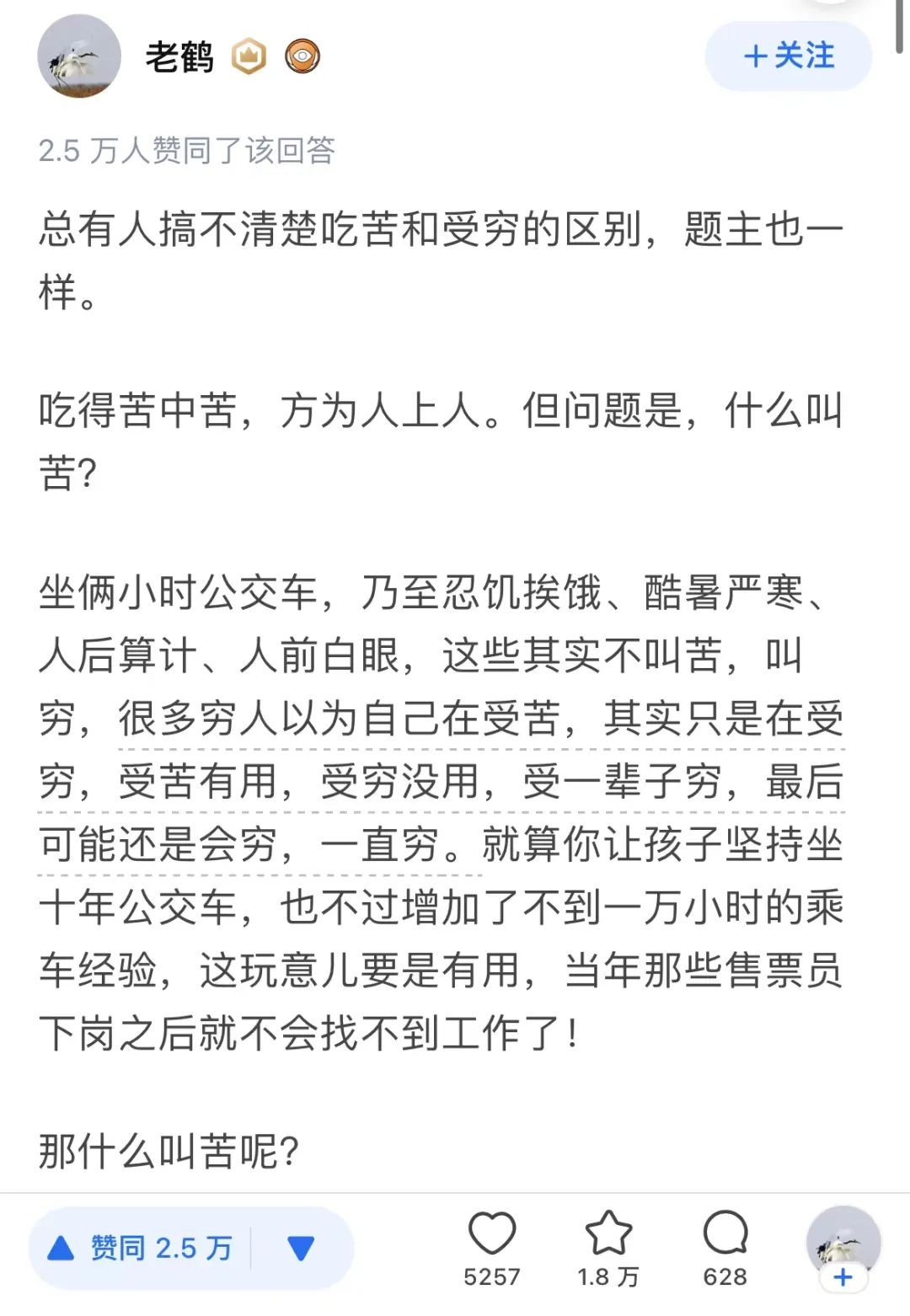 坐2小时公交车,乃至忍饥挨饿、酷暑严寒、人后算计、人前白眼,这些其实不叫苦,叫穷。